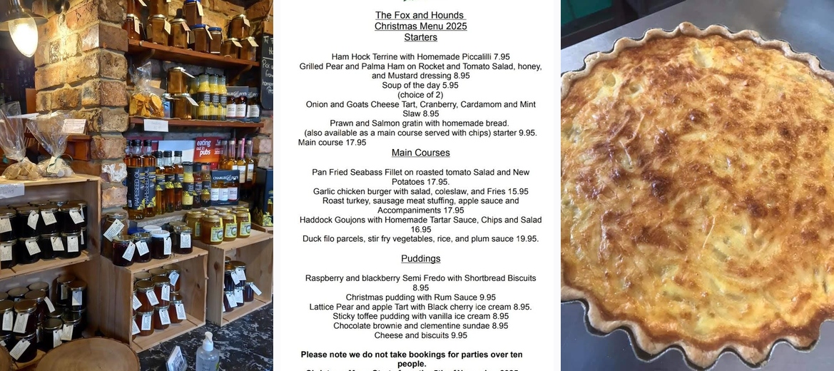 The Fox and Hounds offers a diverse menu featuring starters like Ham Hock Terrine, main courses such as Pan Fried Seabass, and delightful desserts like Sticky Toffee Pudding. The mix of options caters to various tastes.